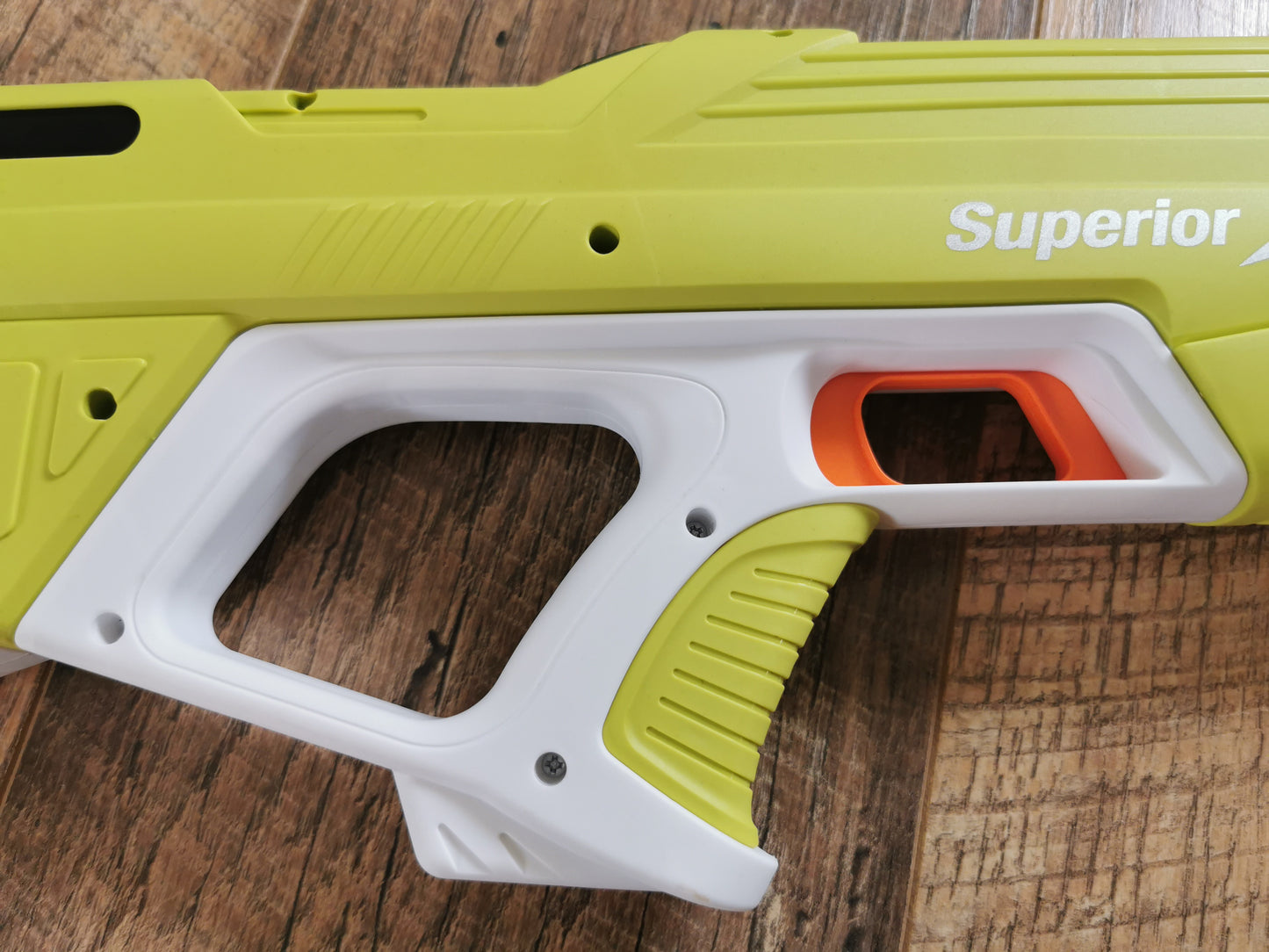 Iga päästikutõmme tekitab võimsa veejoa (laskekaugus kuni 10 m), püstol on suure mahutavusega (ca 280 ml) ja kui see on veega täidetud, saab seda päästikule vajutades pidevalt käivitada. Püstol on valmistatud kvaliteetsest plastikust ja käepide on libisemisvastane. Vee väljalaske ava on lekkekindel (korraliku tihendiga).