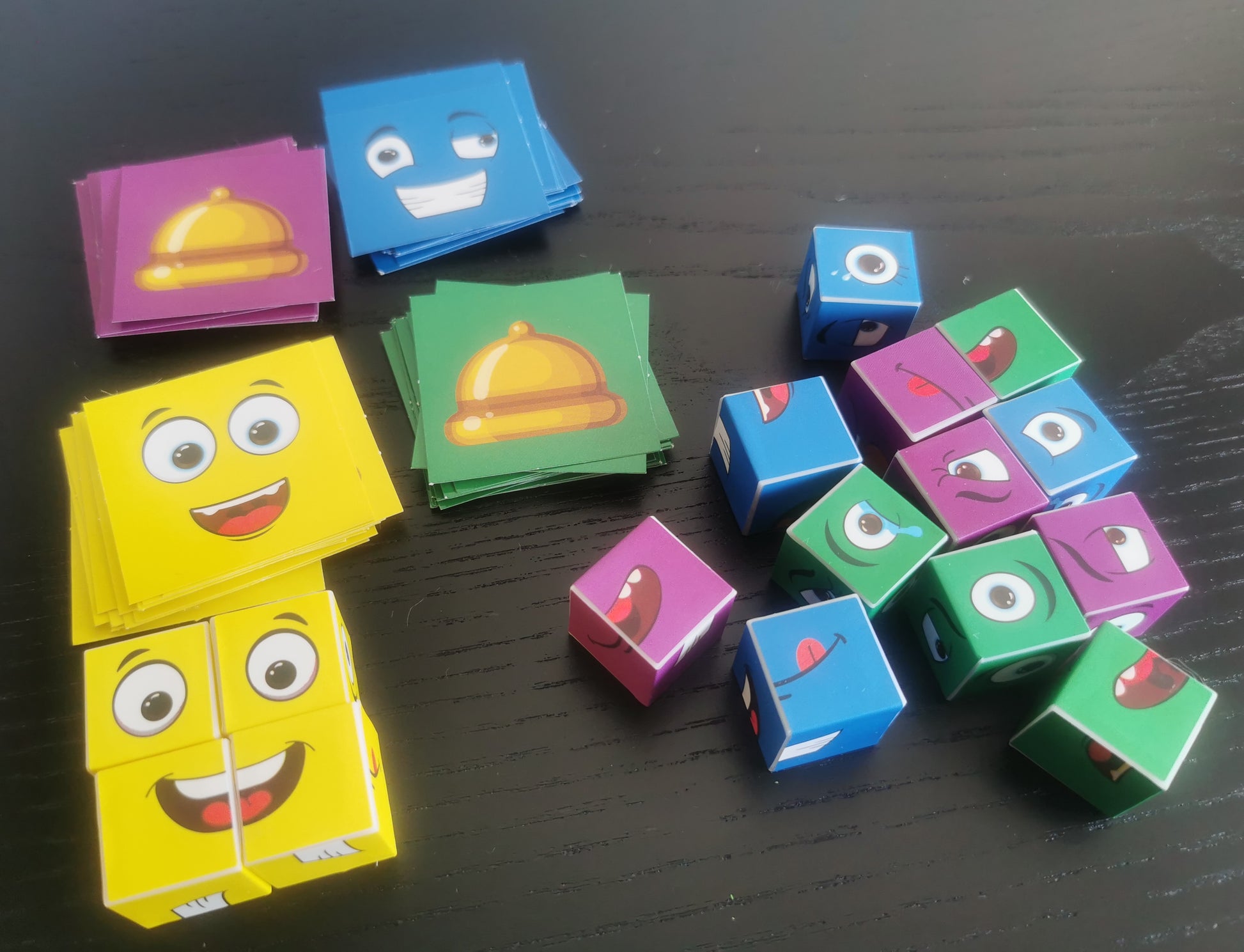 Kõik kaardid segatakse ja paigutatakse laua keskele, igale mängijale jaotatakse erinevat värvi klotsid. Noorim mängija võtab esimesena näokaardi, mille järgi hakkavad kõik mängijad oma klotsidest vastavat pilti kokku panema. Kellel nägu koos, annab sellest märku. Kui vastus on õige, saab mängija kaardi endale. Kui vastus on vale, siis mäng jätkub (mängija, kes valesti pakkus, ootab järgmise näokaardi pööramist). Võidab mängija, kes saab kõige esimesena kokku 10 kaarti.