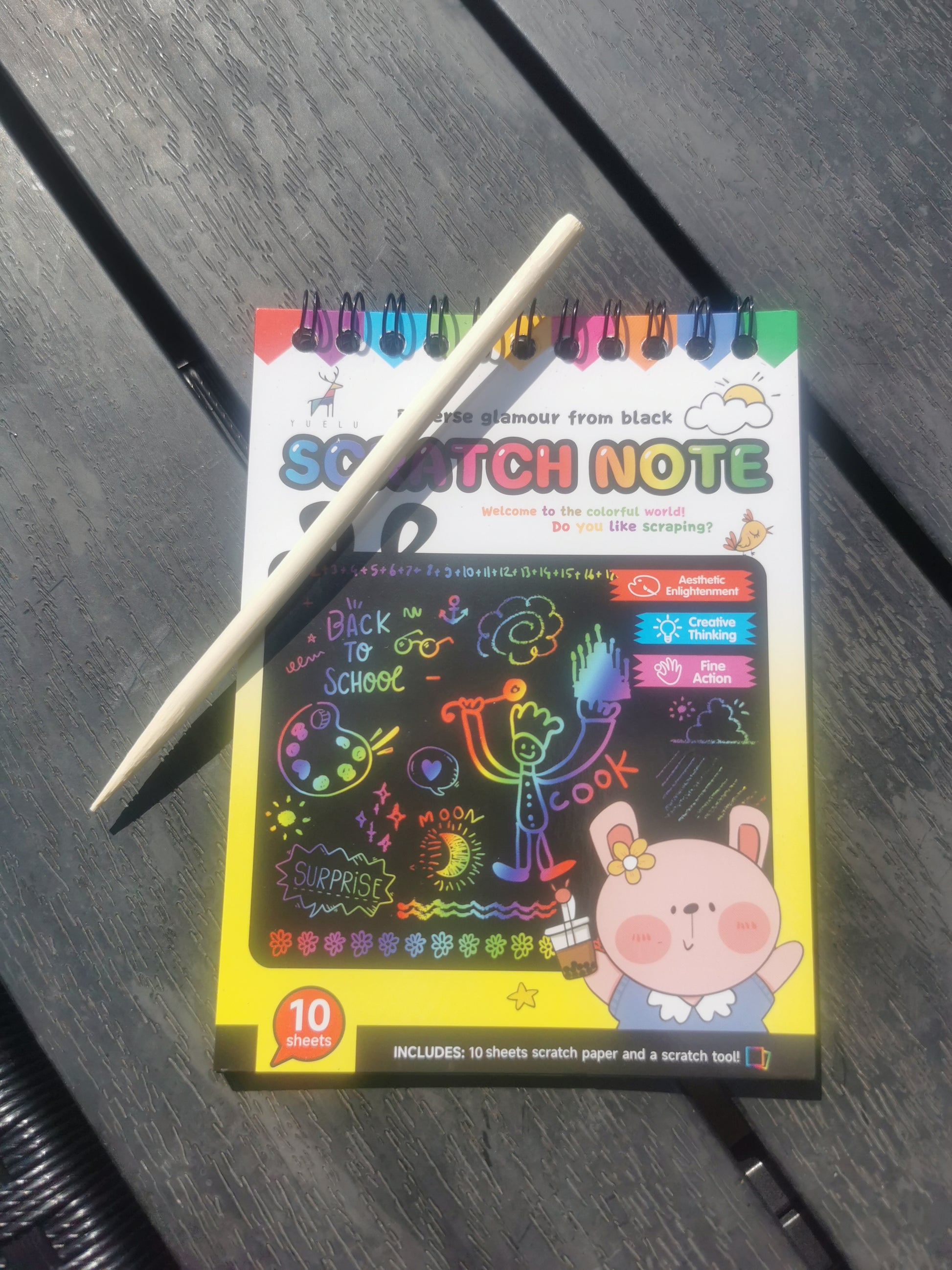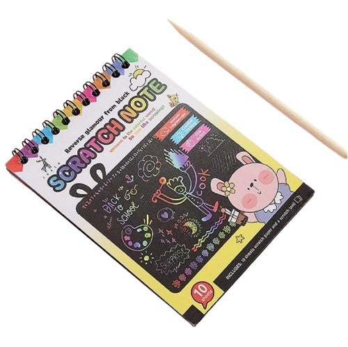 10-leheküljeline tugevatest paberitest klade vahvate joonistuste tegemiseks. Komplektis puidust pliiats kraapimiseks (üks ots peenike, teine jämedam).