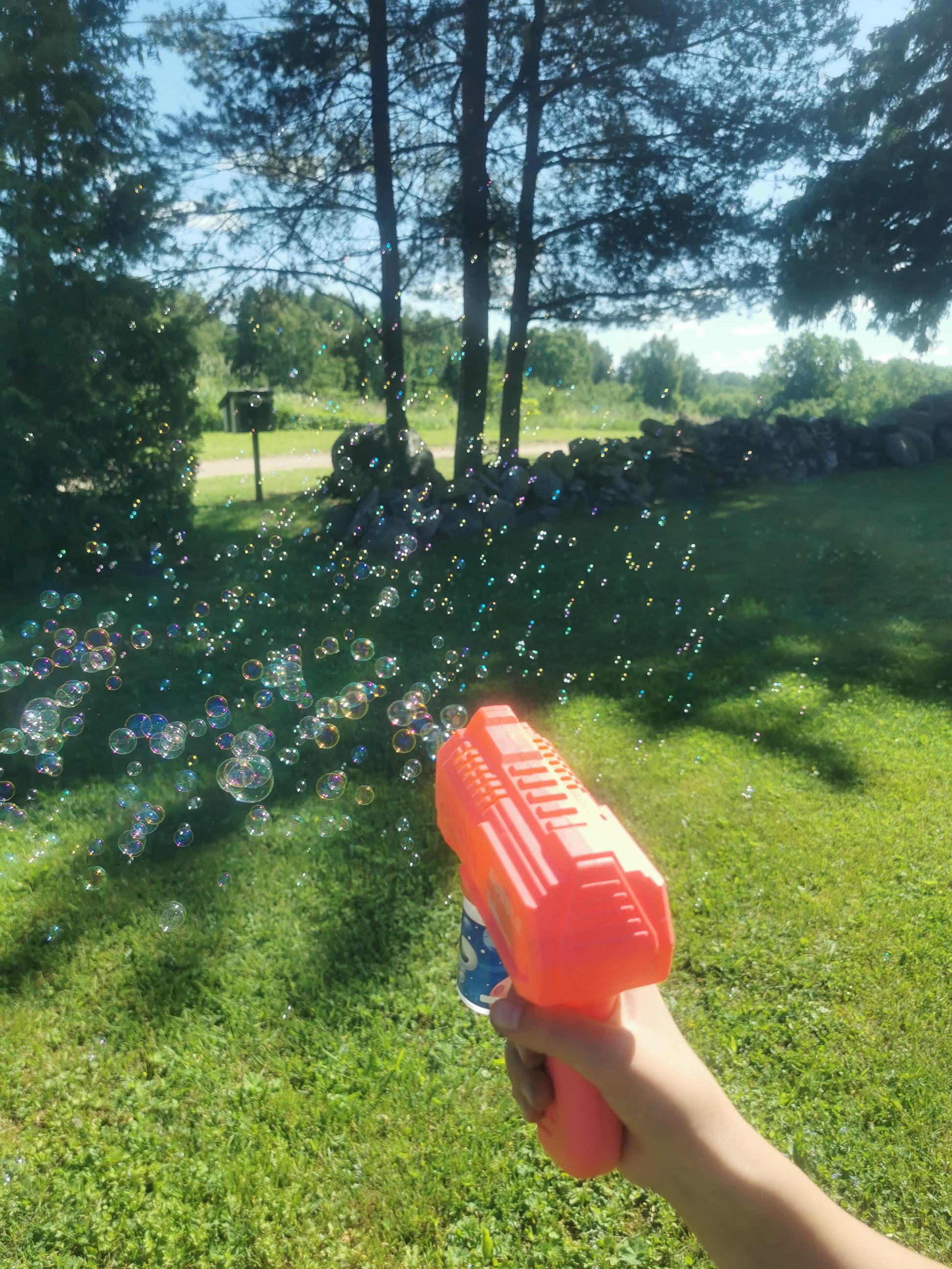 Meie tüdrukutele väga meeldib mullidega mängida. Aegade jooksul oleme ostnud erinevaid mullitajaid. Nüüd proovisime seda püssi ja tõesti on äge! Mulle tuleb palju, vedeliku pudel ei leki ega pläkerda, nii et võib julgelt 3-4 aastastele kätte anda! :D