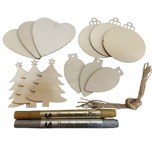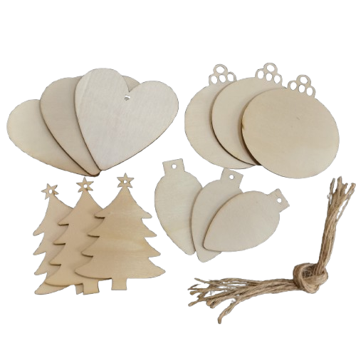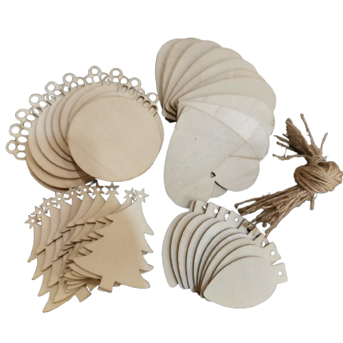 Erinevad komplektid puidust jõuluehetest koos takunööridega.
