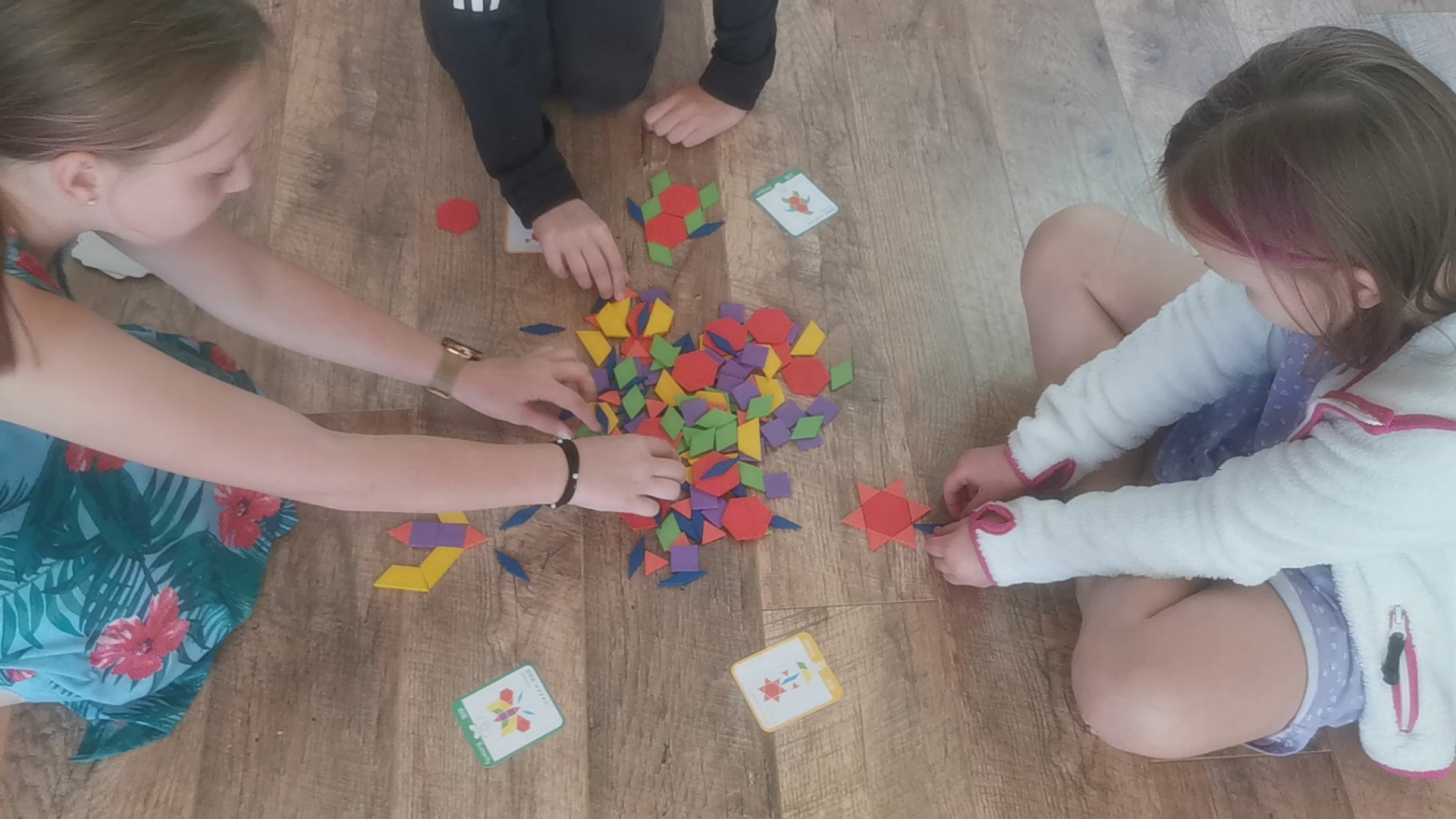 Komplektis on ka 24 erinevat kaardikest, mille järgi kujundeid kokku panna.
